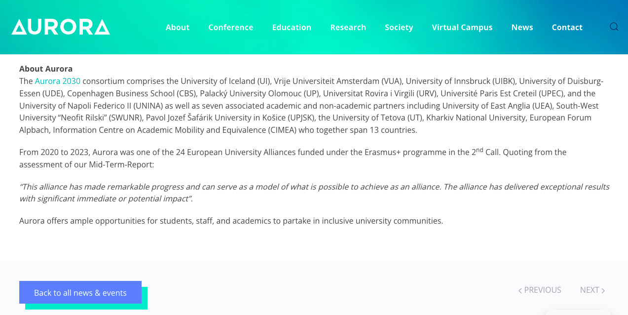 This educational project is included in the AURORA DIVERSITY AND EQUALITY AWARD 2019 booklet. This publication highlights innovative and successful inclusion and diversity interventions across all the Aurora Universities Network.